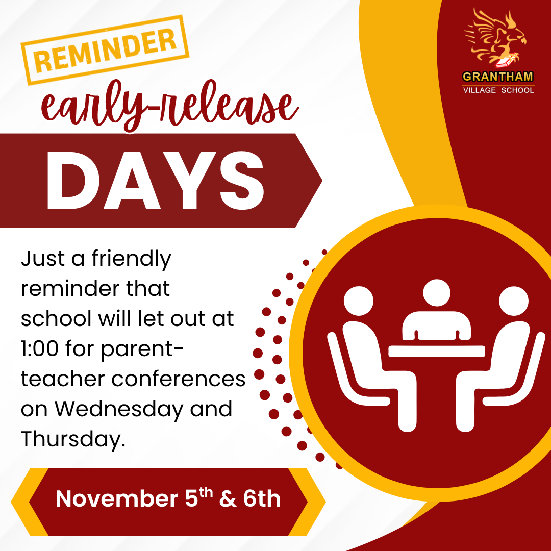 This is just a friendly reminder that on Wednesday, November 5th and Thursday, November 6th school will let out at 1:00 p.m. for parent-teacher conferences those afternoons.